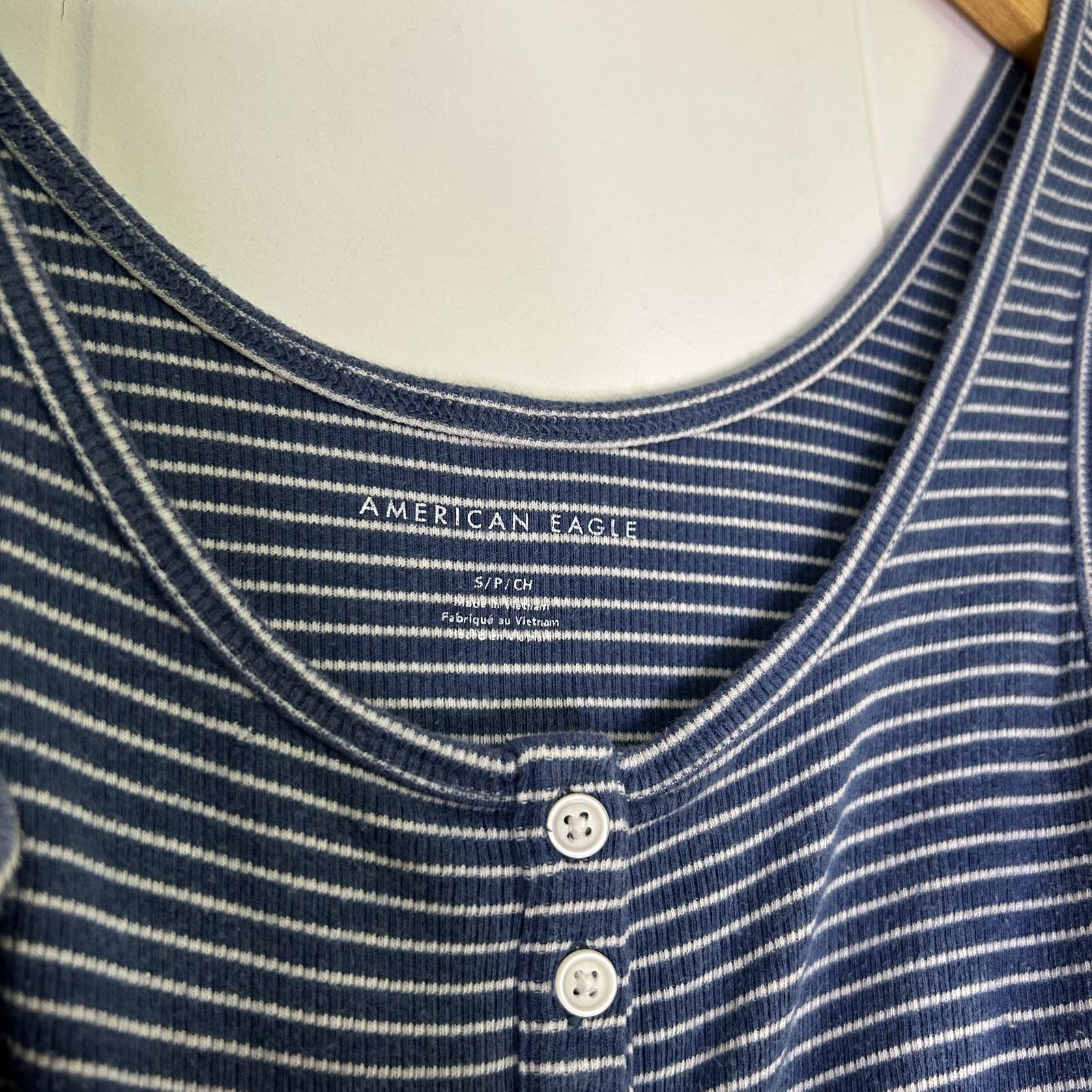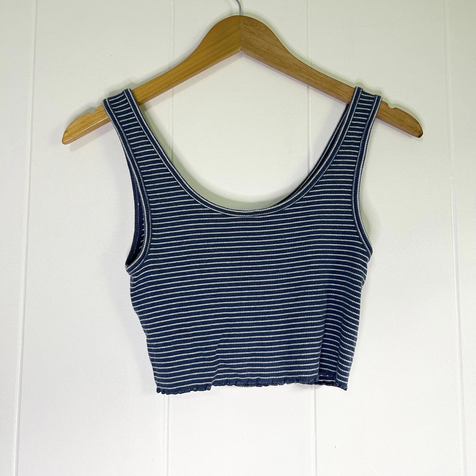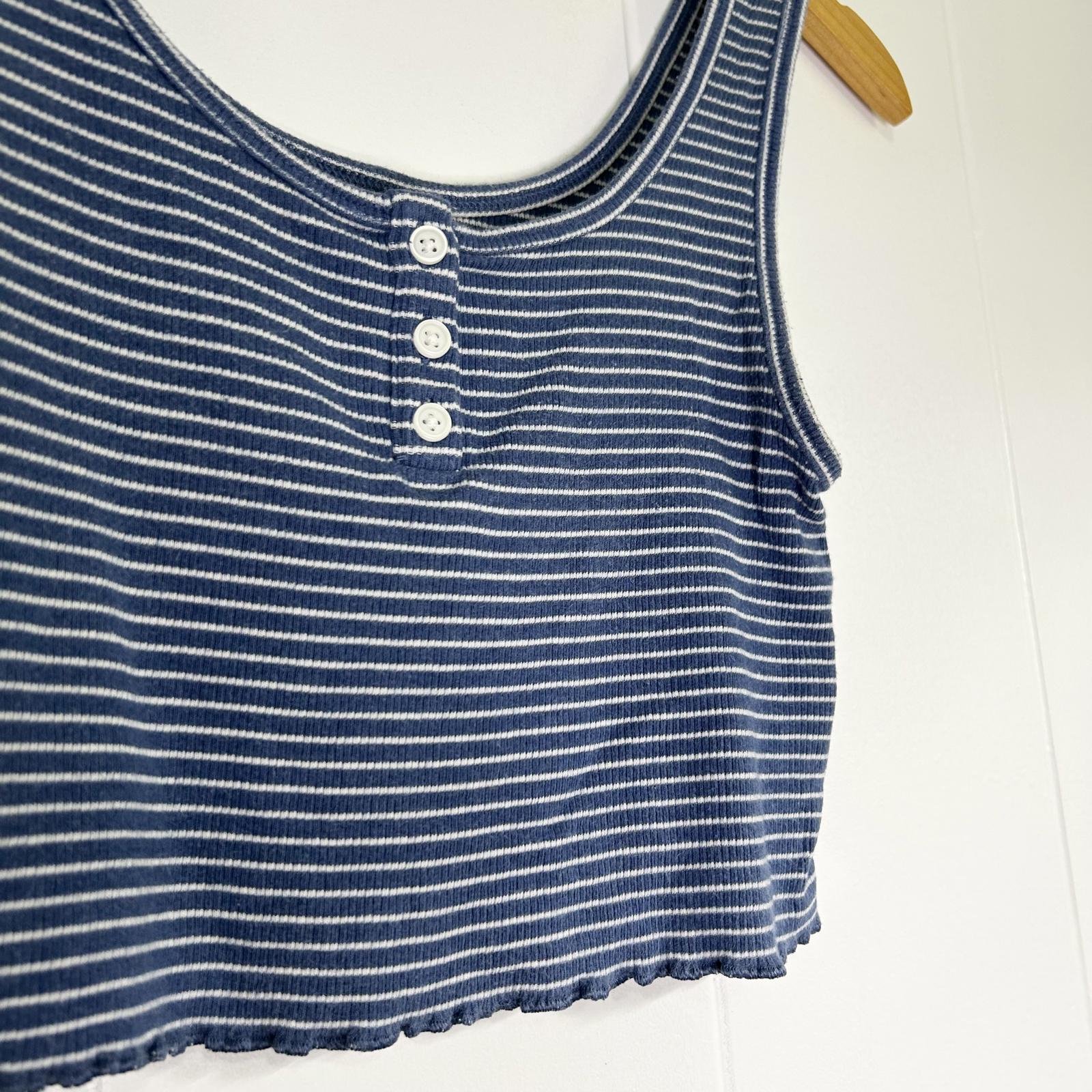 American Eagle Outfitters Blue Striped Lettuce Hem Tank Crop Top Women's Small